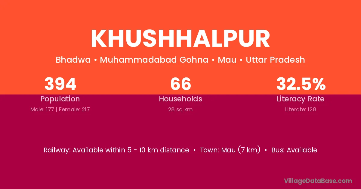 Khushhalpur village has a total population of 2,292 people, of which 1,226 are males and 1,066 are females.