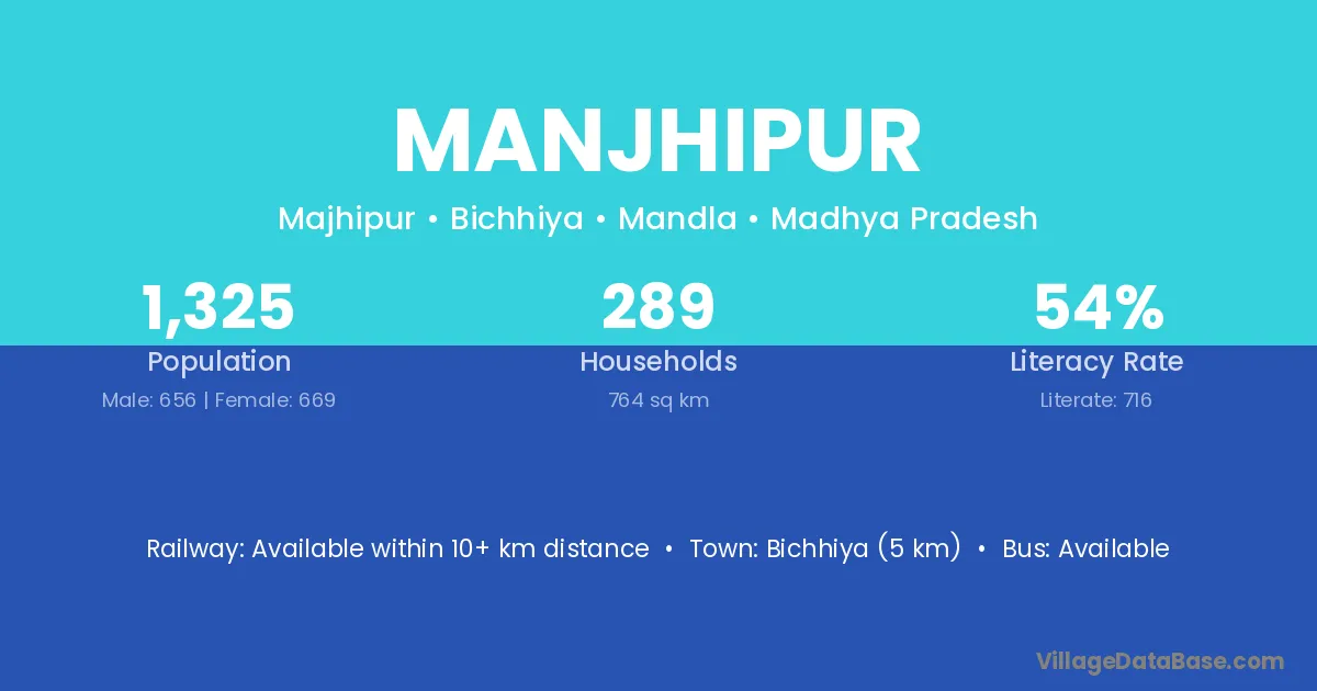 Manjhipur village has a total population of 3,185 people, of which 1,664 are males and 1,521 are females.