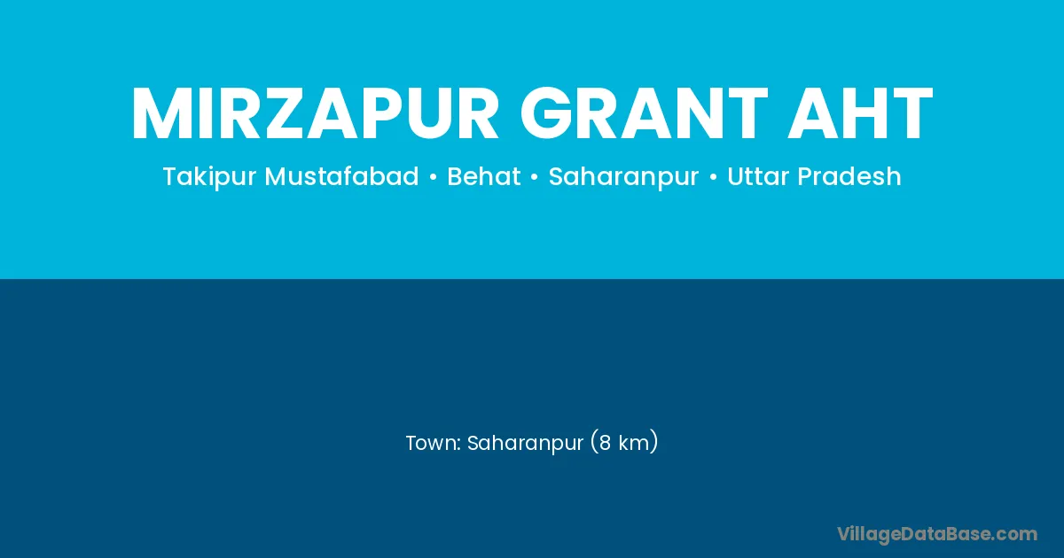 Saharanpur (8 km) is the nearest town to Mirzapur Grant Aht village for major economic activities and is located approximately 8 km away.