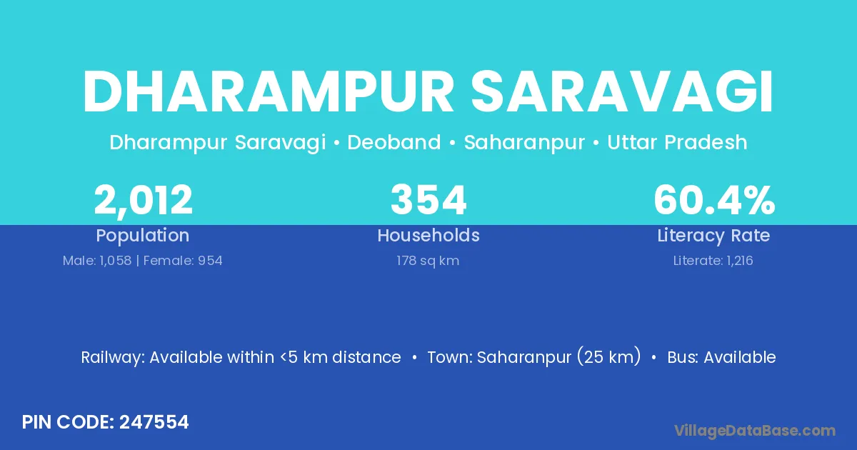 Saharanpur (25 km) is the nearest town to Dharampur Saravagi village for major economic activities and is located approximately 25 km away.