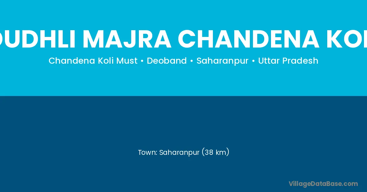 Saharanpur (38 km) is the nearest town to Dudhli Majra Chandena Koli village for major economic activities and is located approximately 38 km away.