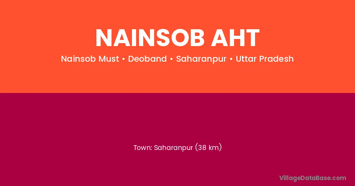 Saharanpur (38 km) is the nearest town to Nainsob Aht village for major economic activities and is located approximately 38 km away.