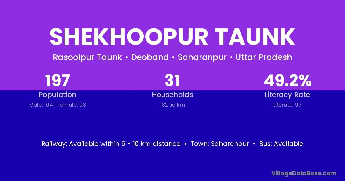 Saharanpur is the nearest town to Shekhoopur Taunk village for major economic activities