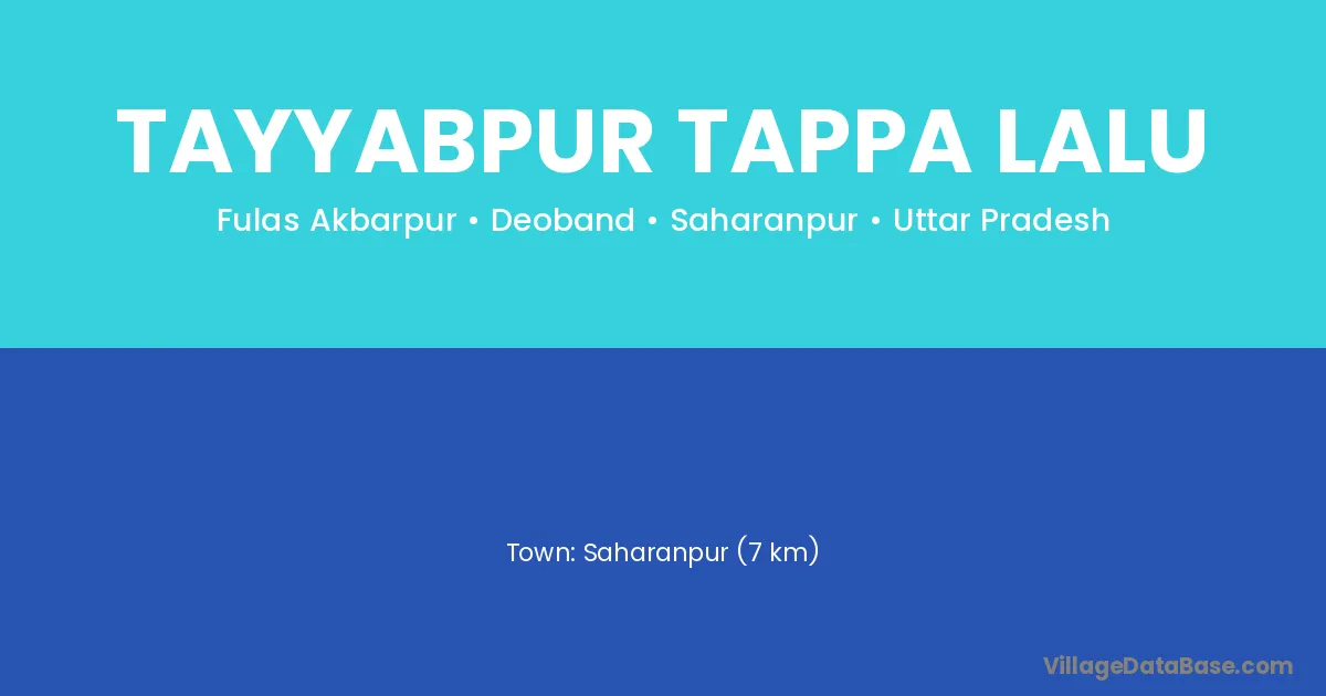 Saharanpur (7 km) is the nearest town to Tayyabpur Tappa Lalu village for major economic activities and is located approximately 7 km away.