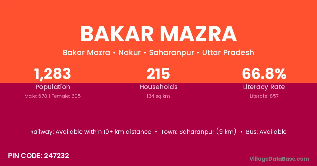 Saharanpur (9 km) is the nearest town to Bakar Mazra village for major economic activities and is located approximately 9 km away.