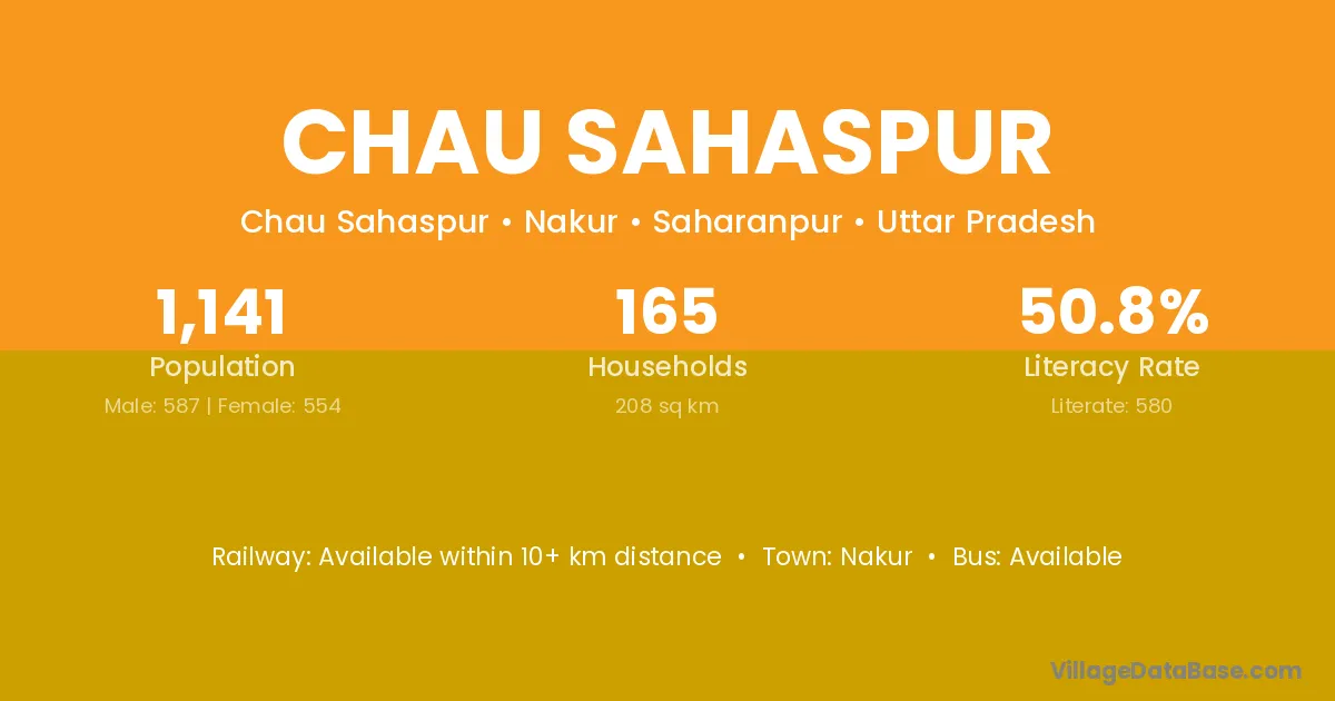 Chau Sahaspur village has a total population of 1,141 people, of which 587 are males and 554 are females.