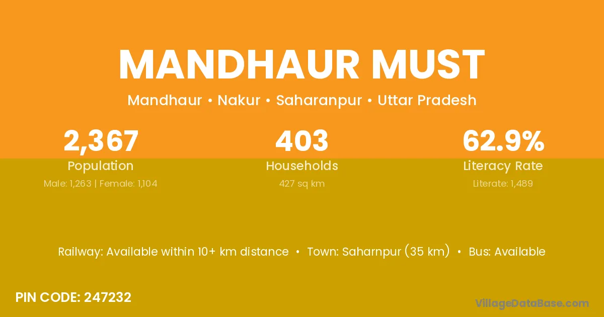 According to Census 2011 information, the village code of Mandhaur Must village is 247232.