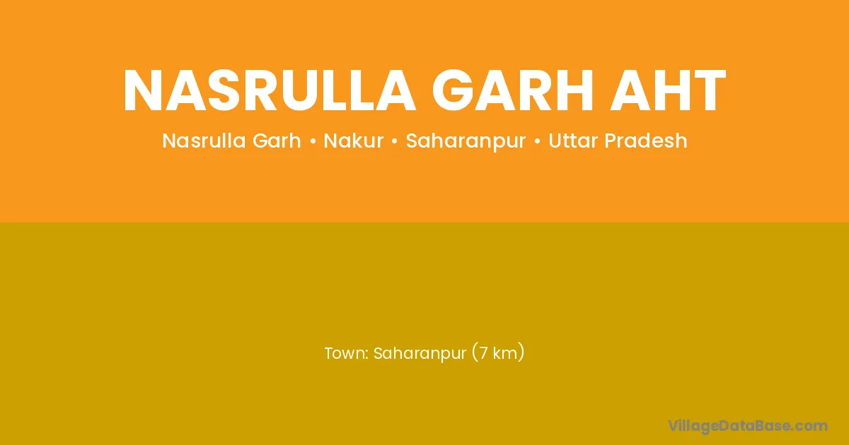 Saharanpur (7 km) is the nearest town to Nasrulla Garh Aht village for major economic activities and is located approximately 7 km away.