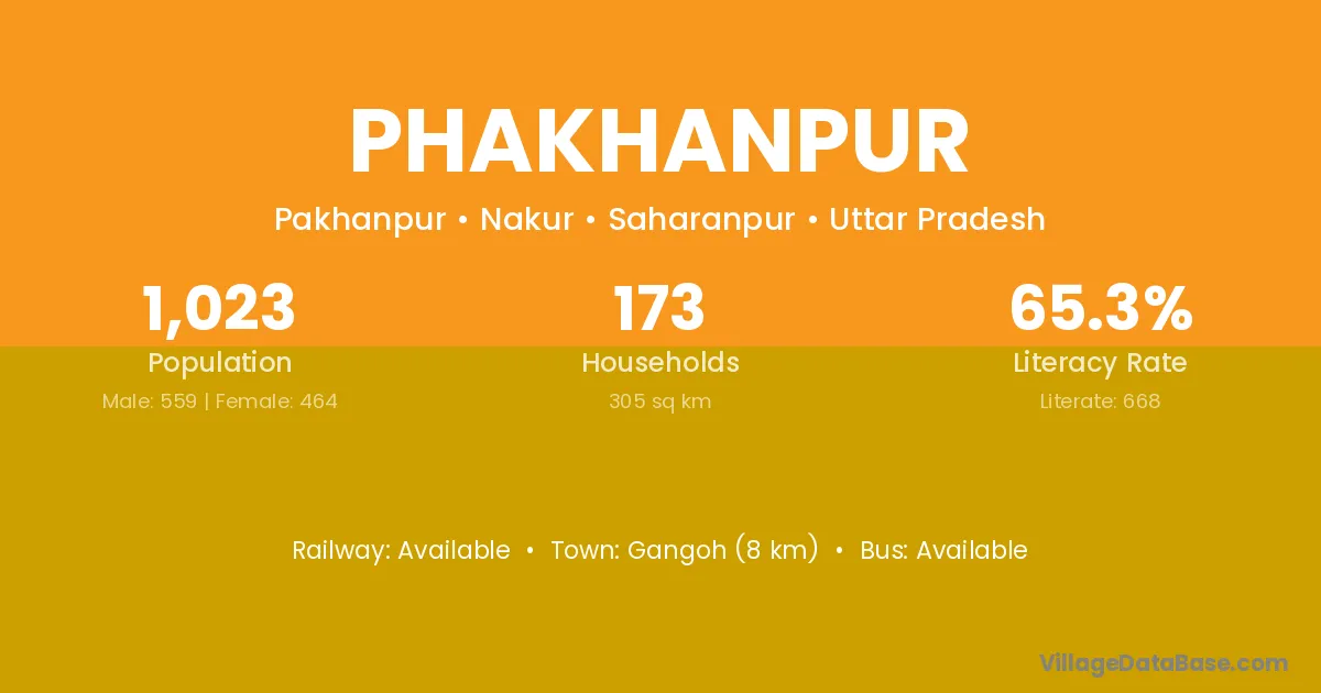 Gangoh (8 km) is the nearest town to Phakhanpur village for major economic activities and is located approximately 8 km away.