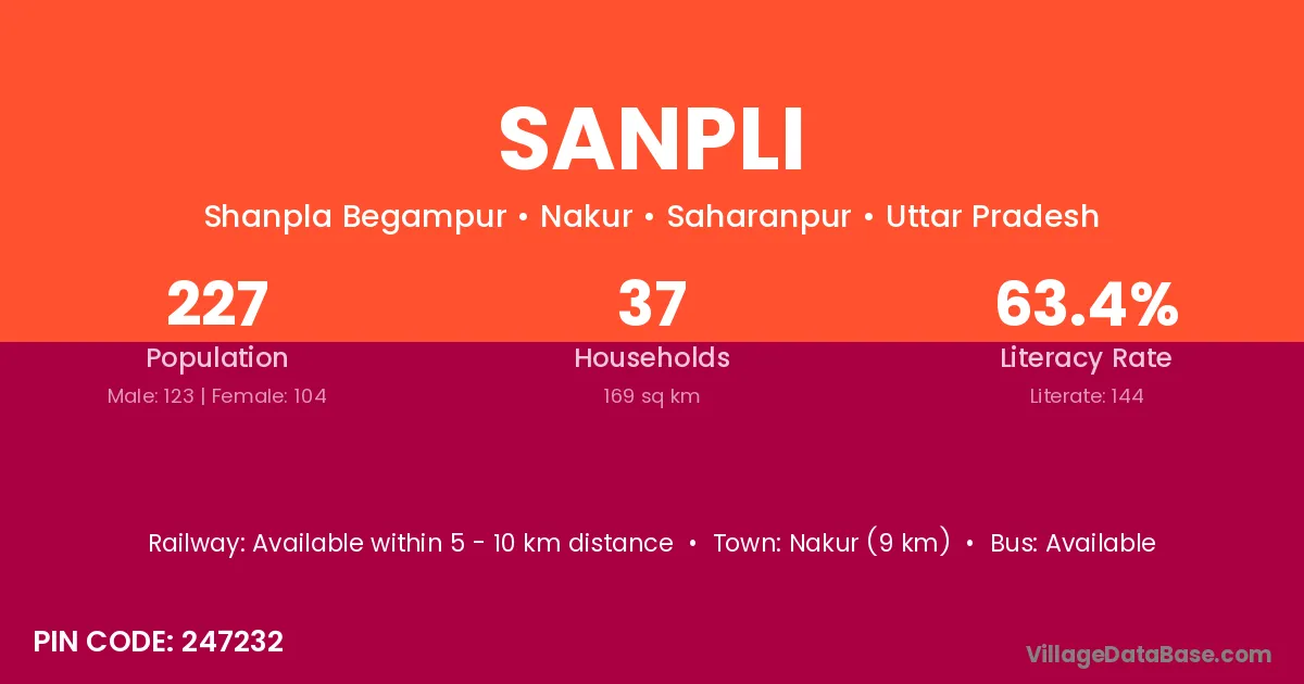 Nakur (9 km) is the nearest town to Sanpli village for major economic activities and is located approximately 9 km away.