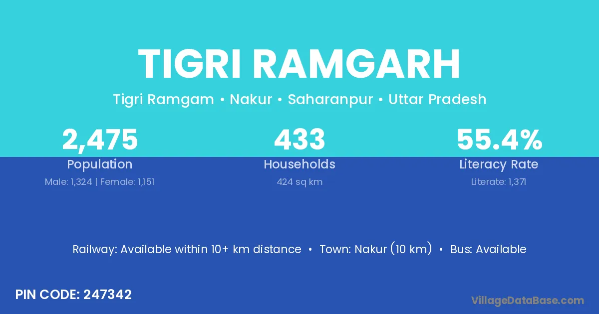 According to Census 2011 information, the village code of Tigri Ramgarh village is 247342.