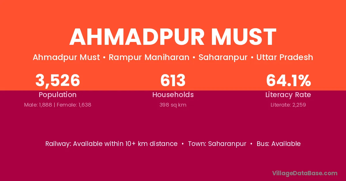 Ahmadpur Must village has a total population of 3,526 people, of which 1,888 are males and 1,638 are females.