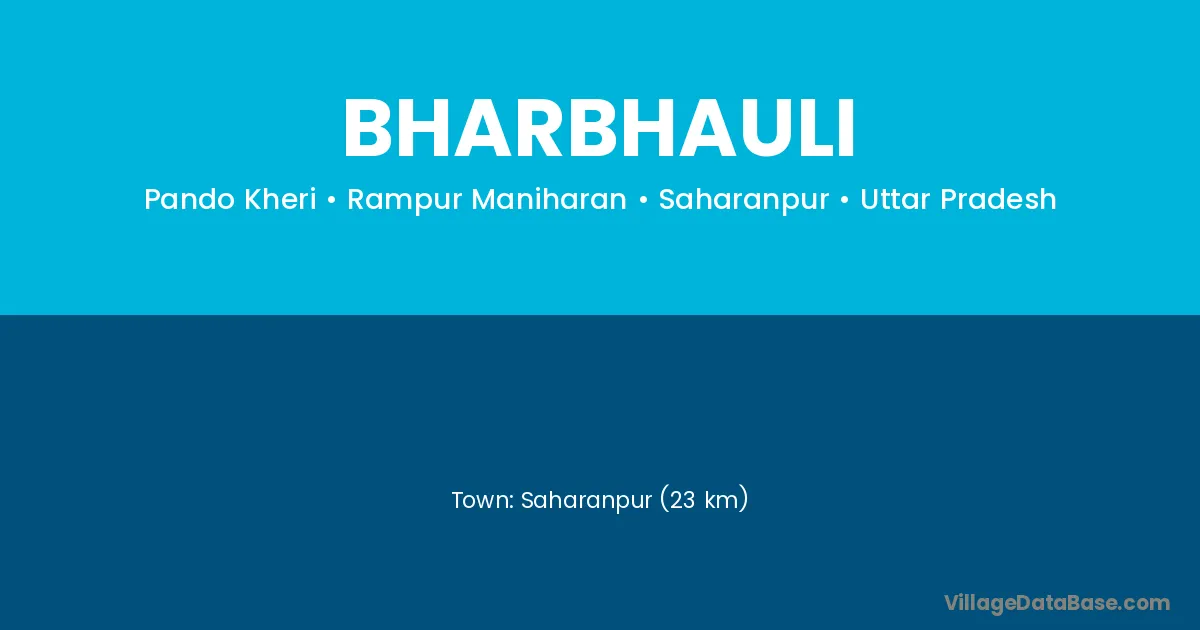 Saharanpur (23 km) is the nearest town to Bharbhauli village for major economic activities and is located approximately 23 km away.