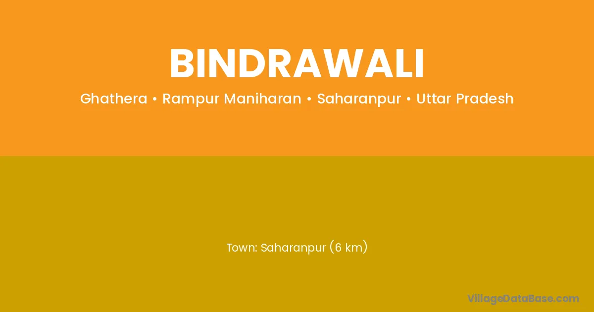 Saharanpur (6 km) is the nearest town to Bindrawali village for major economic activities and is located approximately 6 km away.
