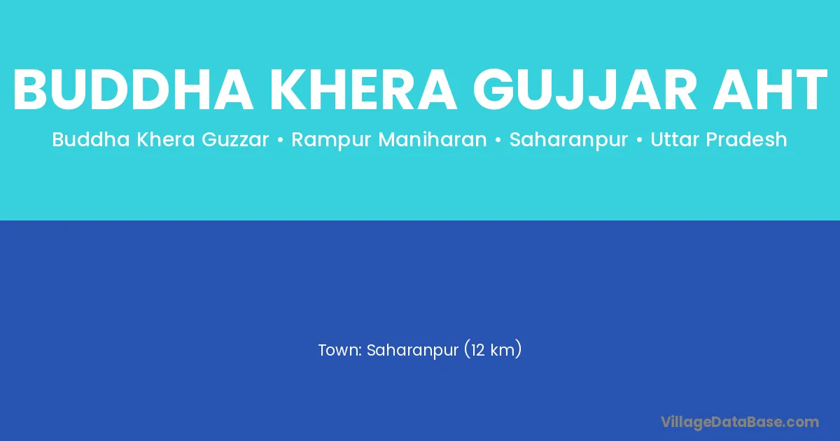 Saharanpur (12 km) is the nearest town to Buddha Khera Gujjar Aht village for major economic activities and is located approximately 12 km away.
