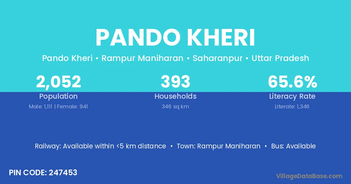 Rampur Maniharan is the nearest town to Pando Kheri village for major economic activities