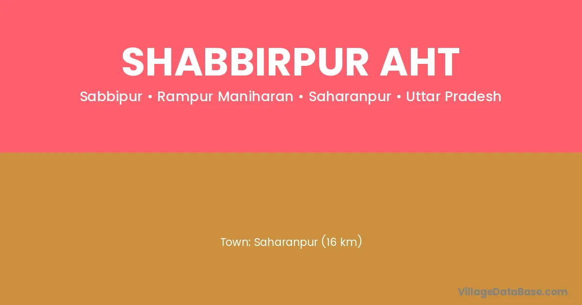 Saharanpur (16 km) is the nearest town to Shabbirpur Aht village for major economic activities and is located approximately 16 km away.