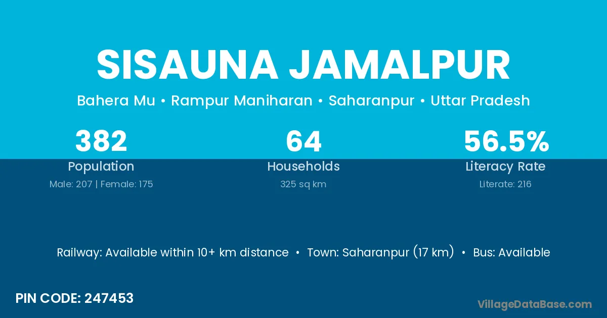 Saharanpur (17 km) is the nearest town to Sisauna Jamalpur village for major economic activities and is located approximately 17 km away.