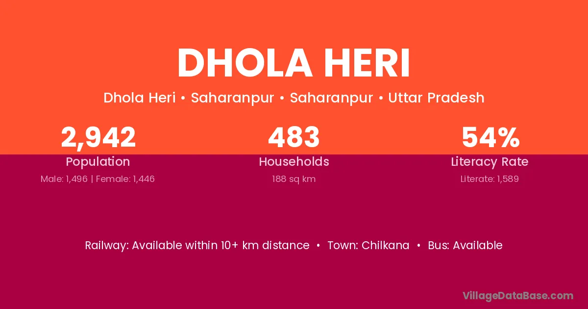Chilkana is the nearest town to Dhola Heri village for major economic activities