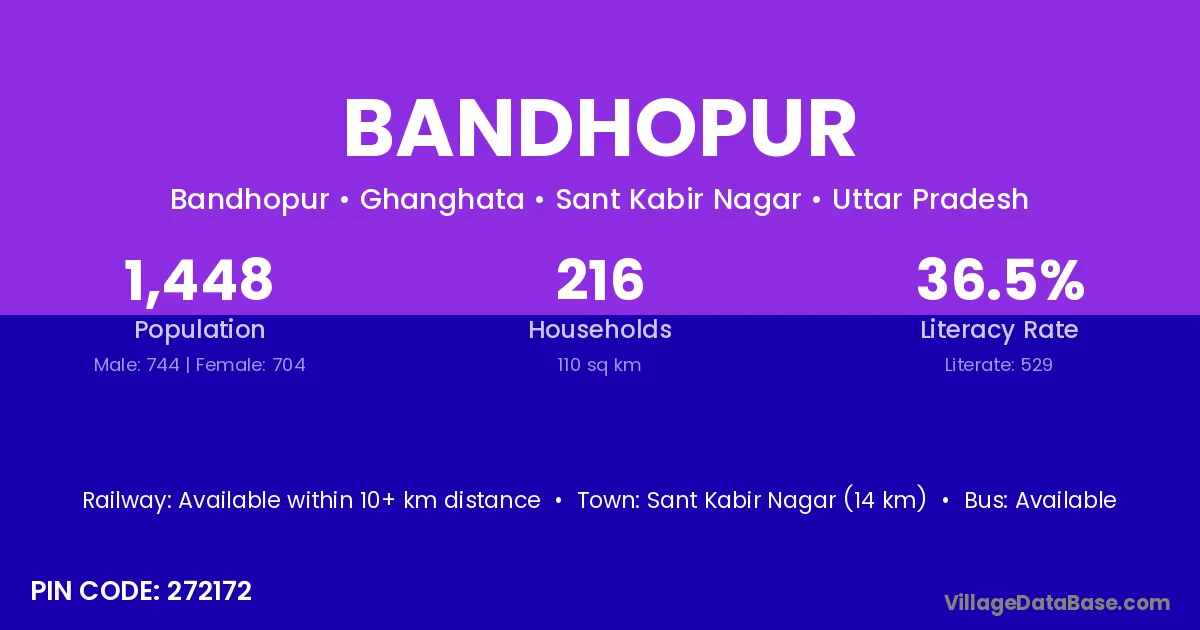 Sant Kabir Nagar (14 km) is the nearest town to Bandhopur village for major economic activities and is located approximately 14 km away.
