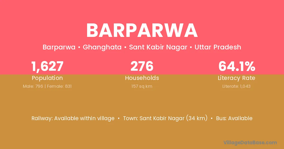 Sant Kabir Nagar (34 km) is the nearest town to Barparwa village for major economic activities and is located approximately 34 km away.