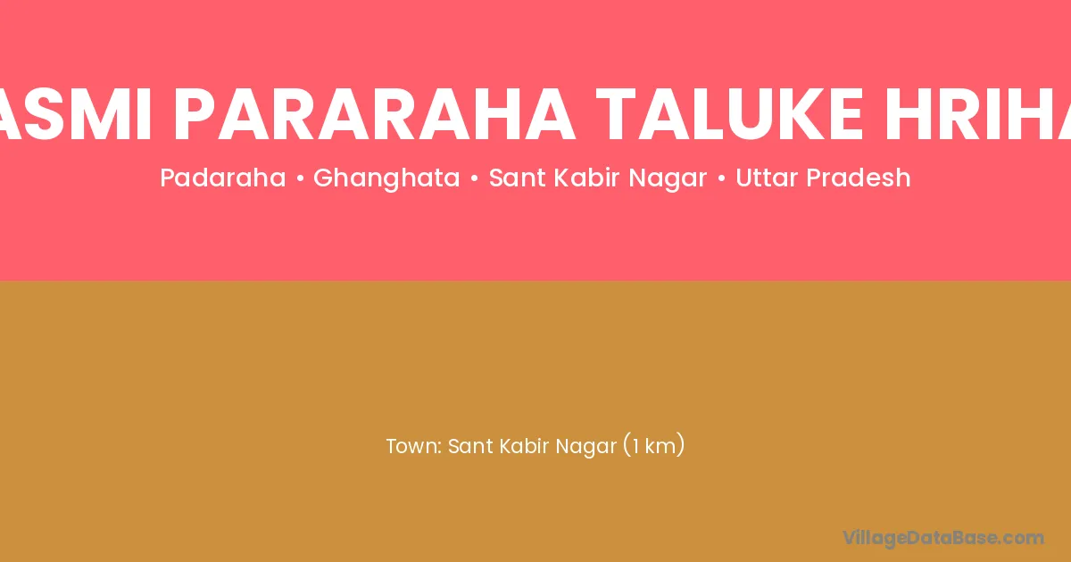 Sant Kabir Nagar (1 km) is the nearest town to Bhasmi Pararaha Taluke Hriharp village for major economic activities and is located approximately 1 km away.