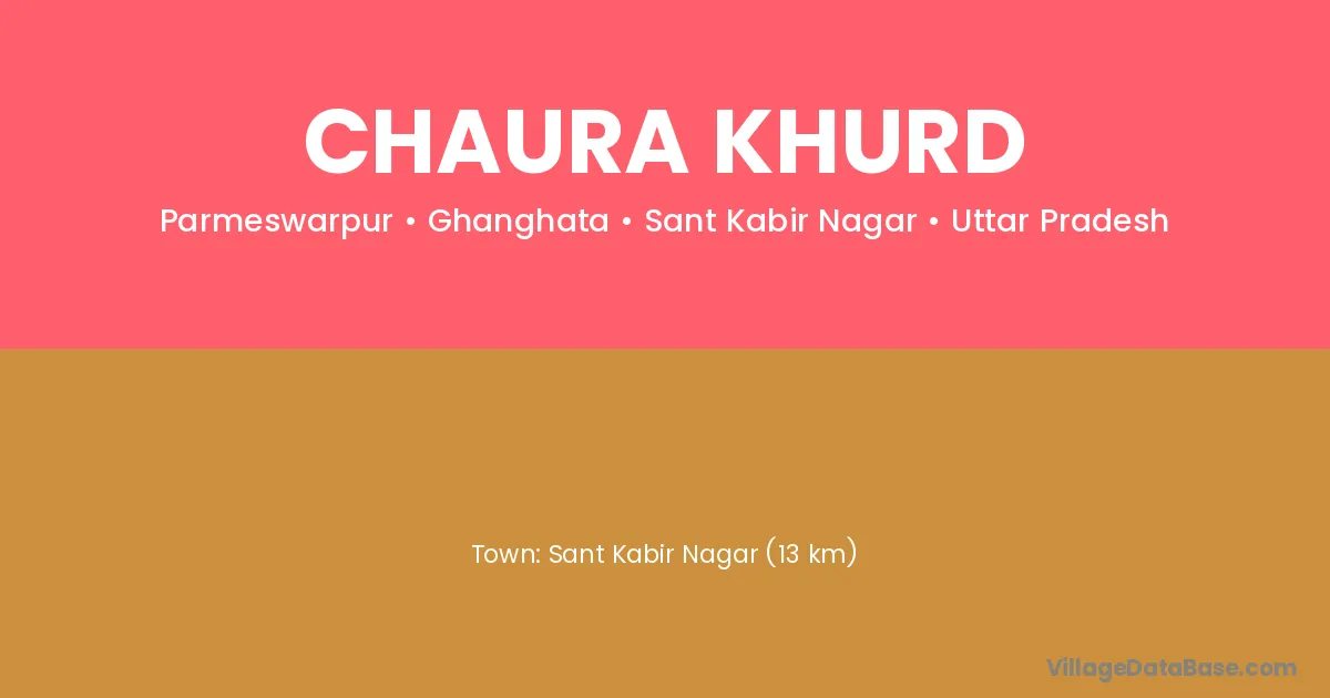 Sant Kabir Nagar (13 km) is the nearest town to Chaura Khurd village for major economic activities and is located approximately 13 km away.