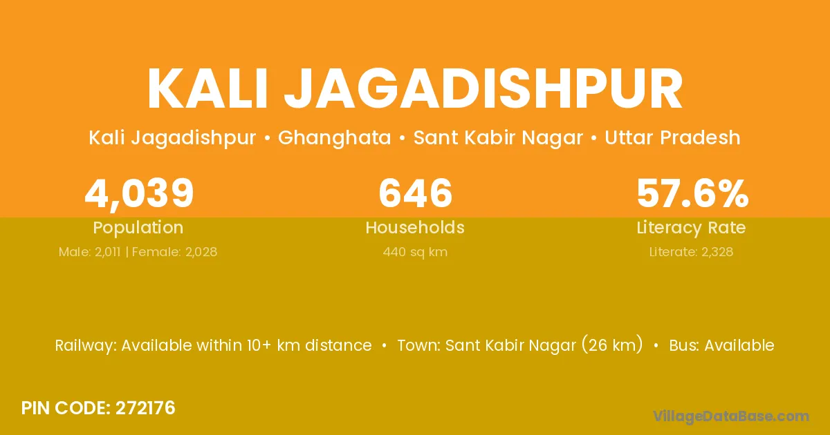 Sant Kabir Nagar (26 km) is the nearest town to Kali Jagadishpur village for major economic activities and is located approximately 26 km away.