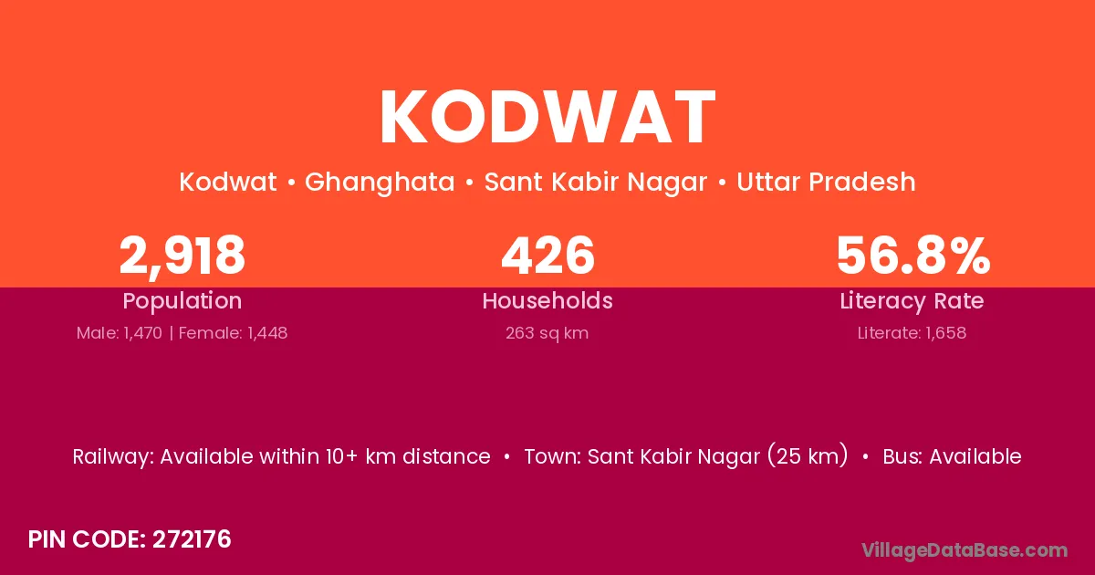 Sant Kabir Nagar (25 km) is the nearest town to Kodwat village for major economic activities and is located approximately 25 km away.