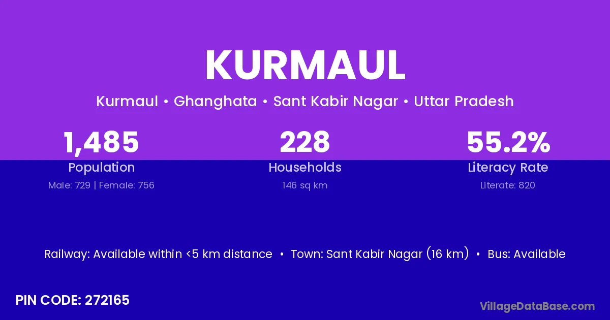 Sant Kabir Nagar (16 km) is the nearest town to Kurmaul village for major economic activities and is located approximately 16 km away.