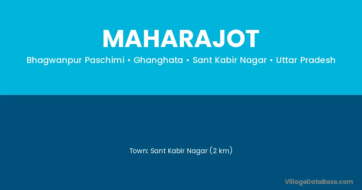 Sant Kabir Nagar (2 km) is the nearest town to Maharajot village for major economic activities and is located approximately 2 km away.