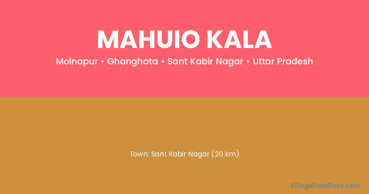 Sant Kabir Nagar (20 km) is the nearest town to Mahuio Kala village for major economic activities and is located approximately 20 km away.