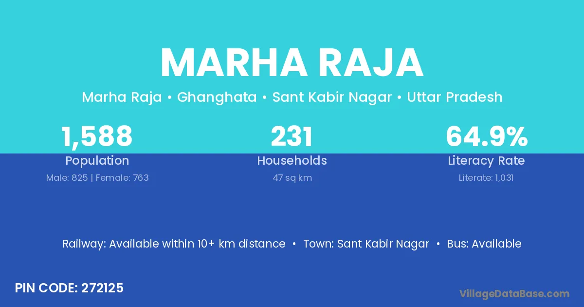Sant Kabir Nagar is the nearest town to Marha Raja village for major economic activities