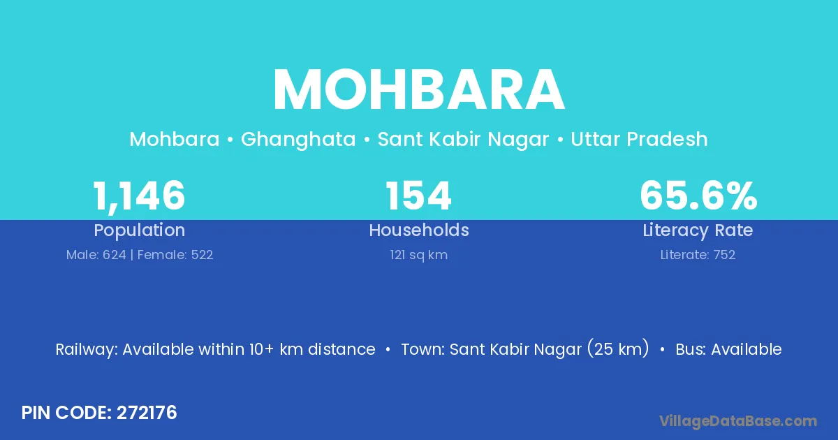 Sant Kabir Nagar (25 km) is the nearest town to Mohbara village for major economic activities and is located approximately 25 km away.