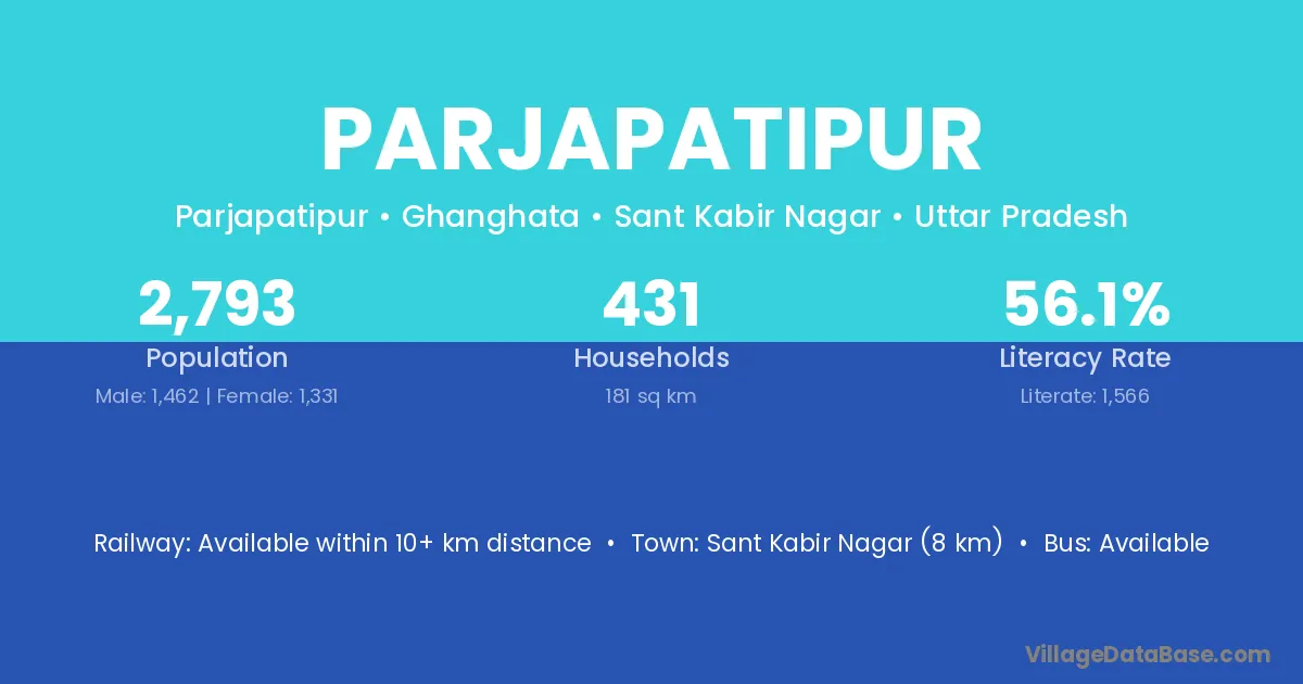 Sant Kabir Nagar (8 km) is the nearest town to Parjapatipur village for major economic activities and is located approximately 8 km away.