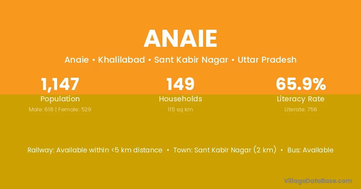 Sant Kabir Nagar (2 km) is the nearest town to Anaie village for major economic activities and is located approximately 2 km away.