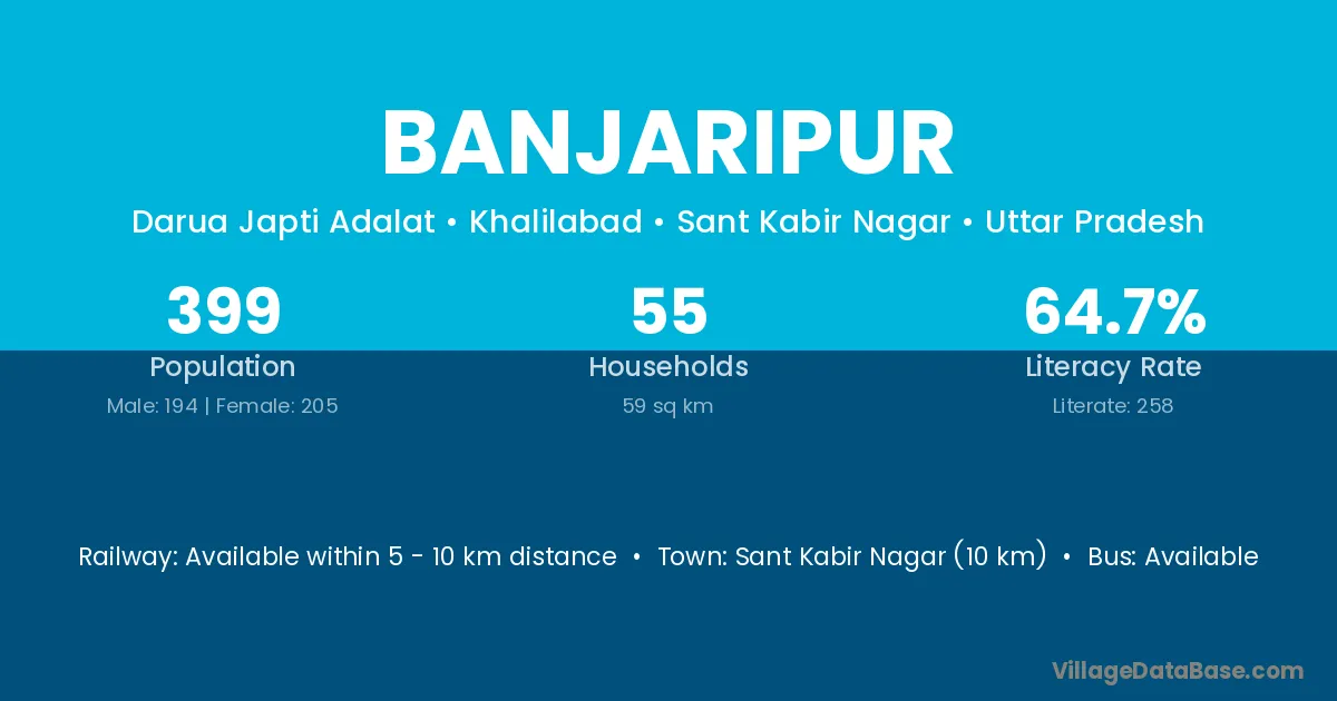 Sant Kabir Nagar (10 km) is the nearest town to Banjaripur village for major economic activities and is located approximately 10 km away.