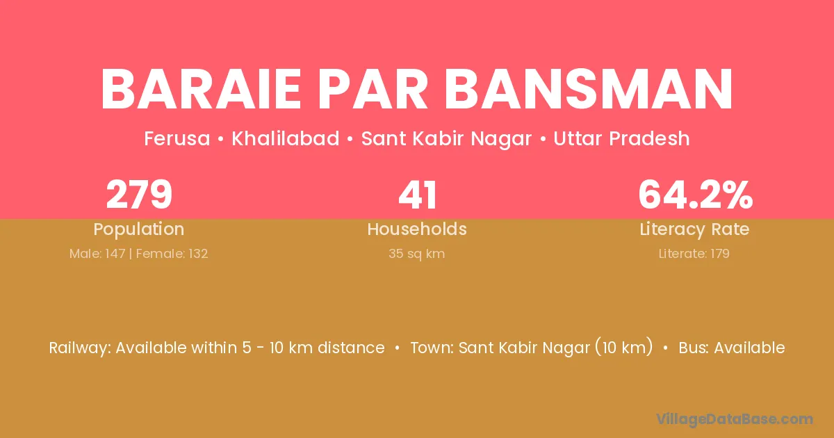 Sant Kabir Nagar (10 km) is the nearest town to Baraie Par Bansman village for major economic activities and is located approximately 10 km away.
