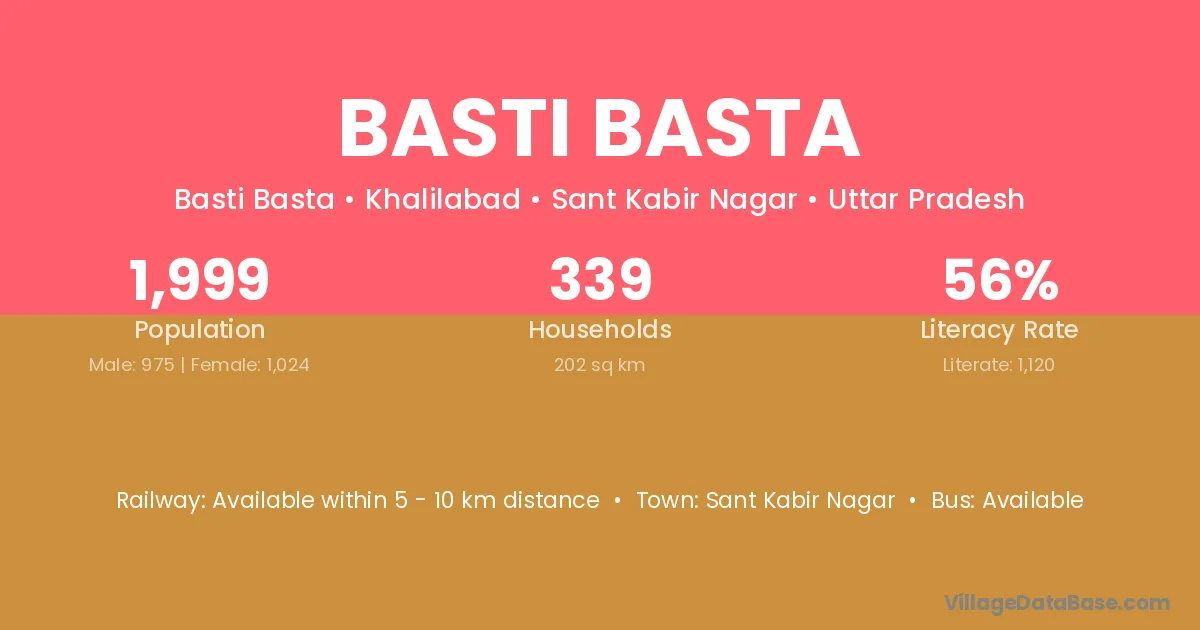 Sant Kabir Nagar is the nearest town to Basti Basta village for major economic activities