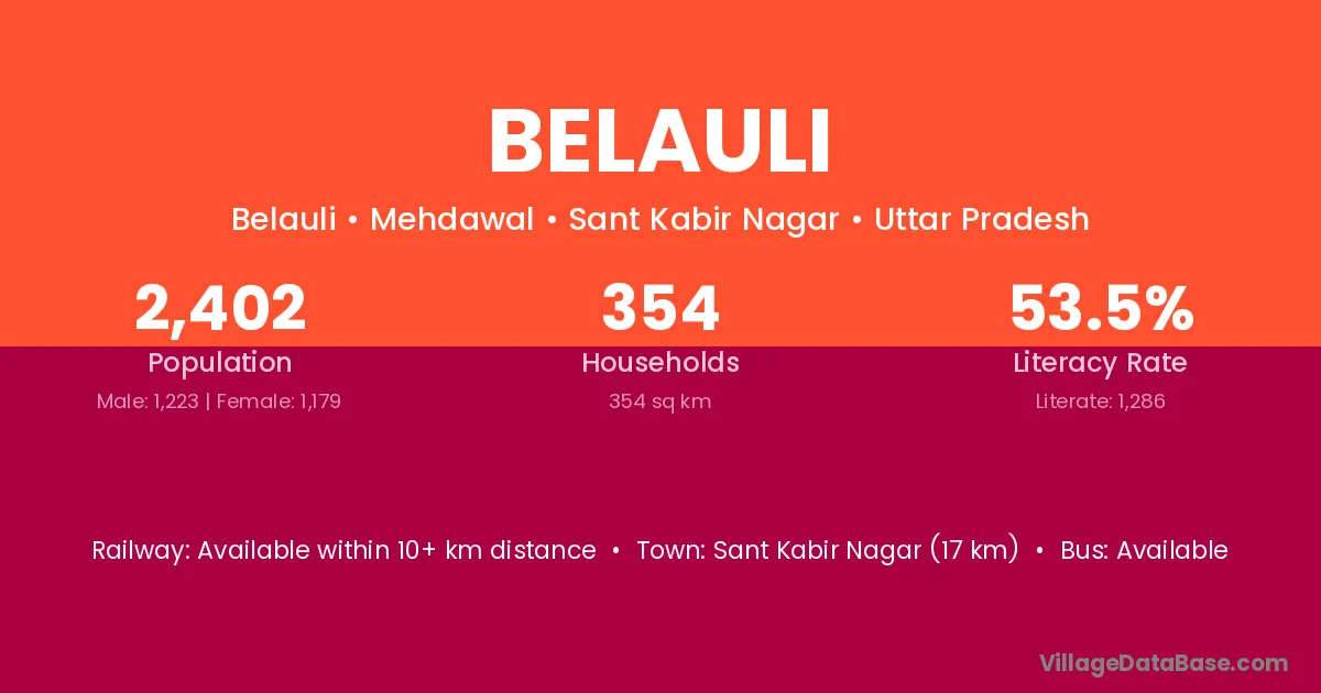 Sant Kabir Nagar (11 km) is the nearest town to Belauli village for major economic activities and is located approximately 11 km away.
