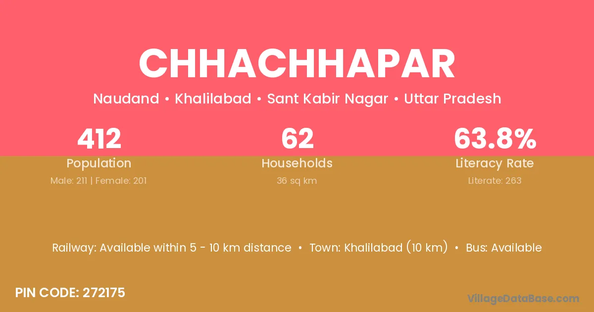 Khalilabad (10 km) is the nearest town to Chhachhapar village for major economic activities and is located approximately 10 km away.