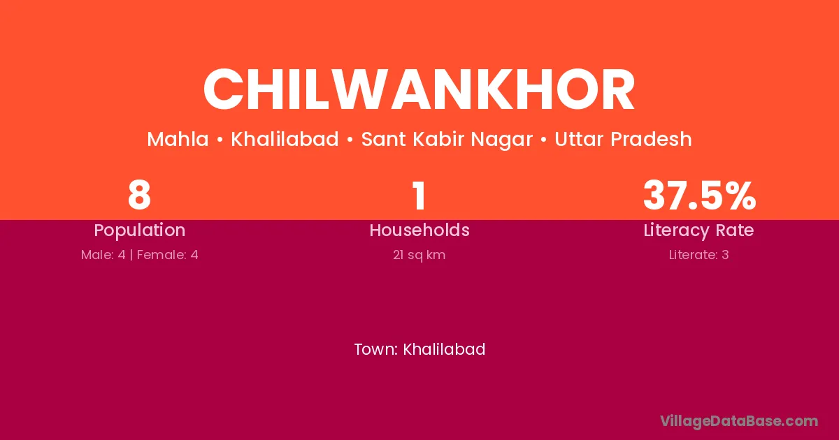 Chilwankhor village has a total population of 8 people, of which 4 are males and 4 are females.