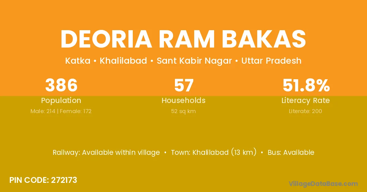 Deoria Ram Bakas village has a total population of 386 people, of which 214 are males and 172 are females.
