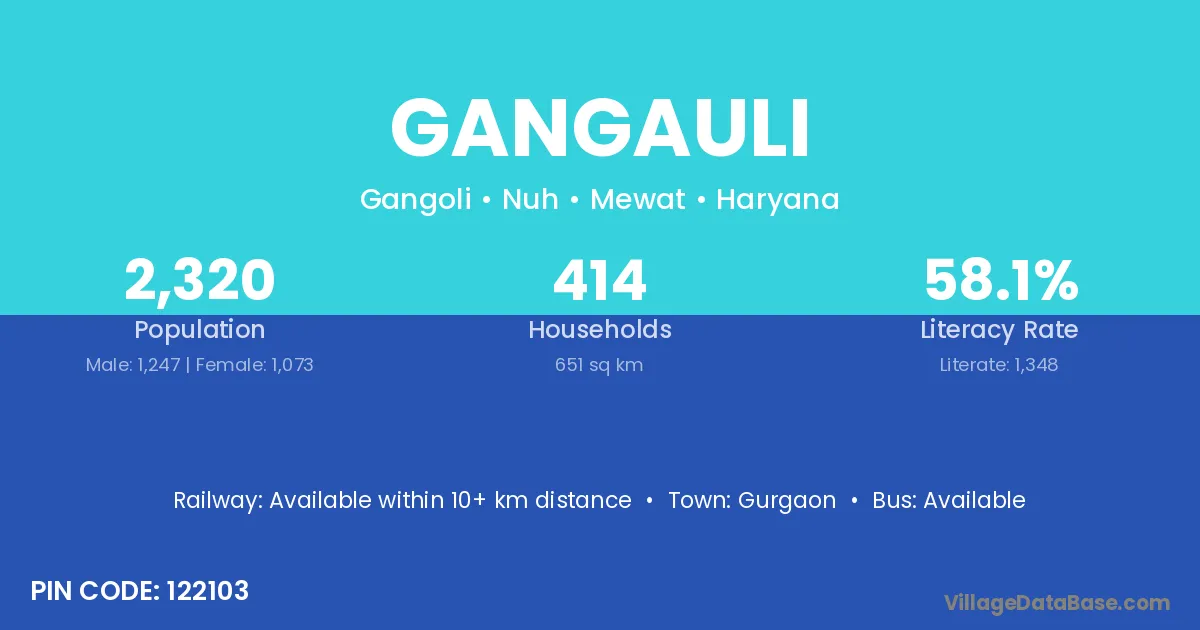 Gangauli village has a total population of 1,335 people, of which 644 are males and 691 are females.