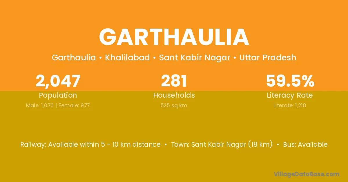 Sant Kabir Nagar (18 km) is the nearest town to Garthaulia village for major economic activities and is located approximately 18 km away.