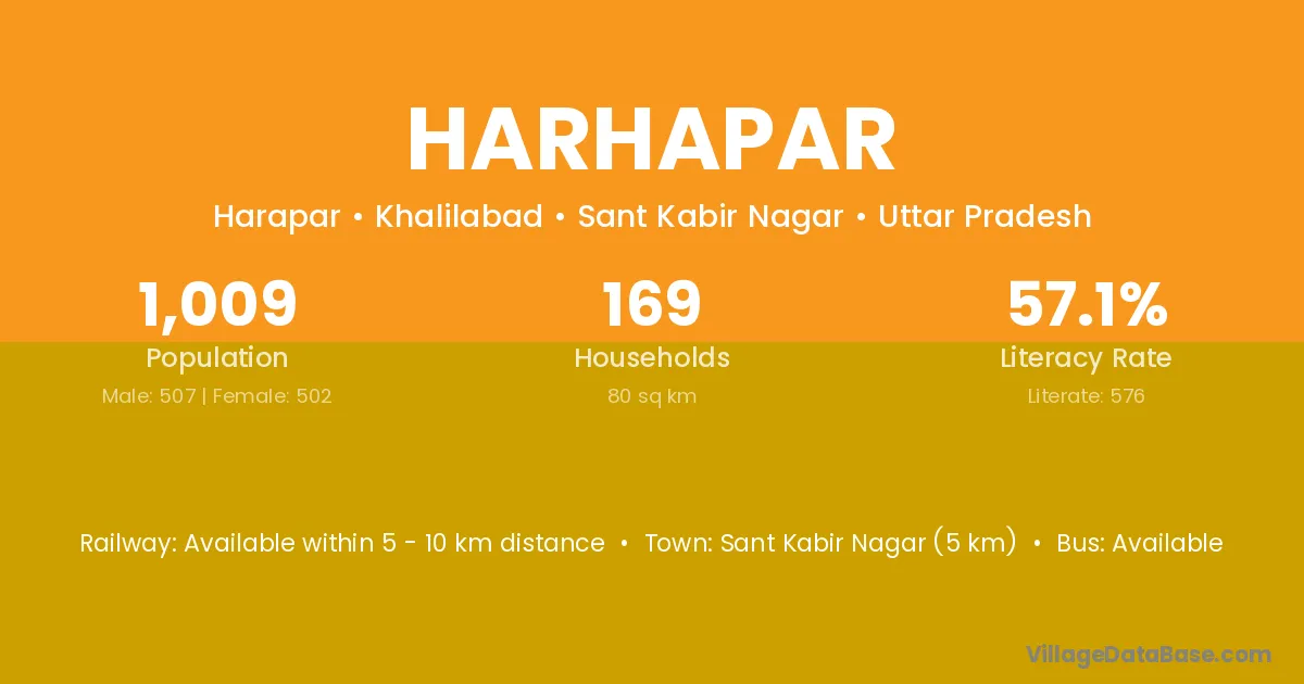 Sant Kabir Nagar (5 km) is the nearest town to Harhapar village for major economic activities and is located approximately 5 km away.