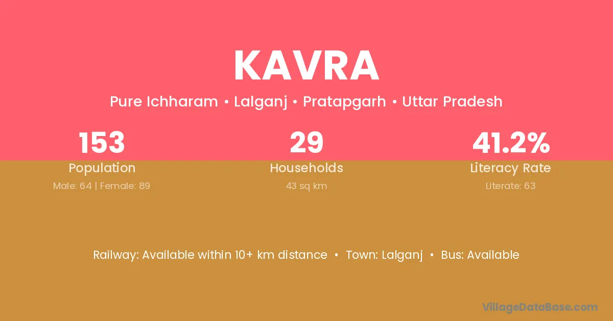Sant Kabir Nagar (13 km) is the nearest town to Kavra village for major economic activities and is located approximately 13 km away.