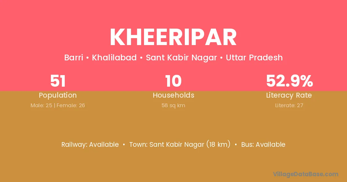 Sant Kabir Nagar (18 km) is the nearest town to Kheeripar village for major economic activities and is located approximately 18 km away.