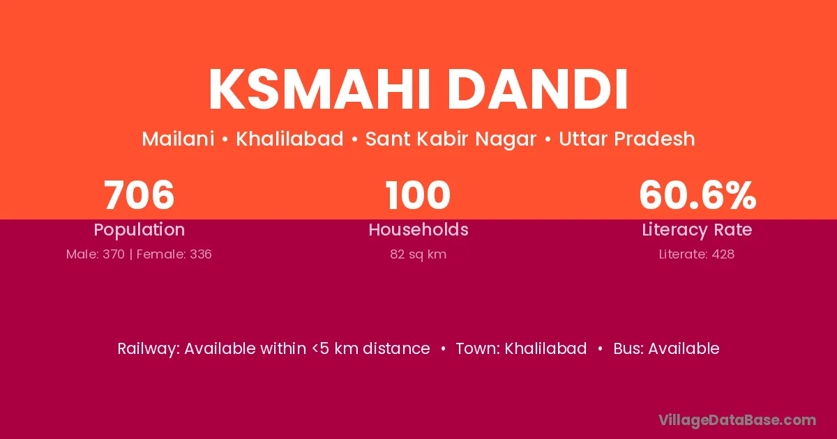 Ksmahi Dandi village has a total population of 706 people, of which 370 are males and 336 are females.