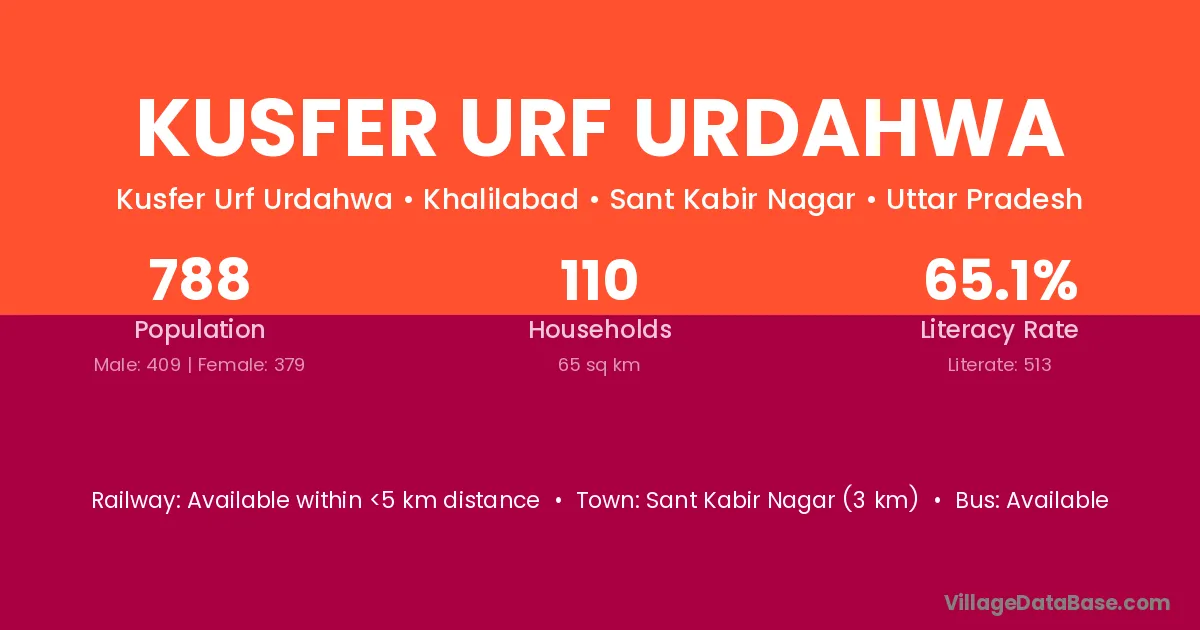 Sant Kabir Nagar (3 km) is the nearest town to Kusfer Urf Urdahwa village for major economic activities and is located approximately 3 km away.